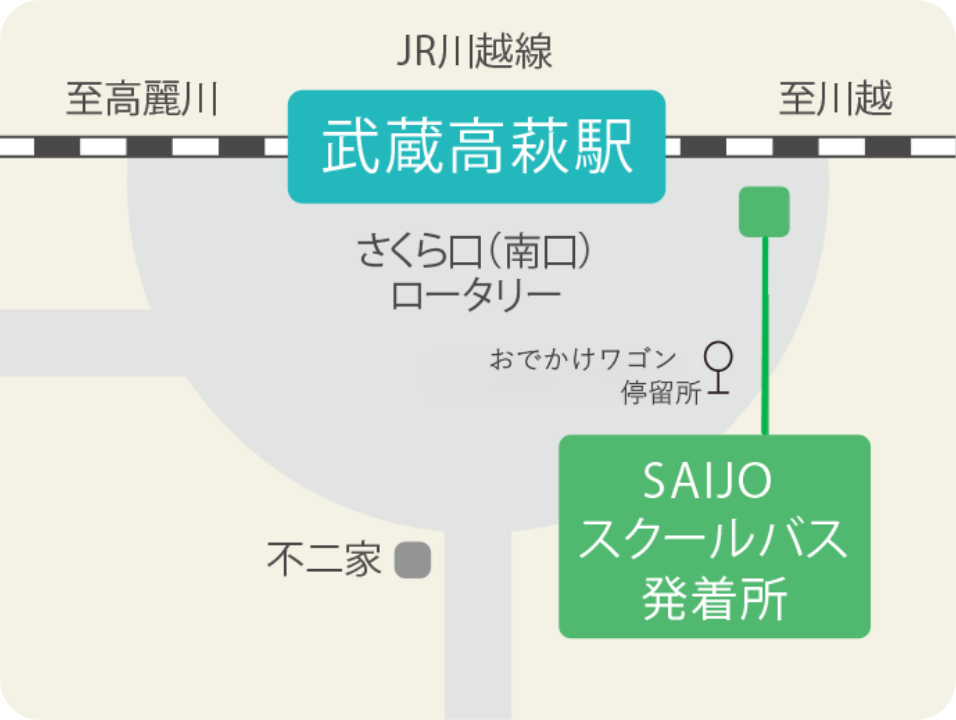 JR川越線「武蔵高萩」駅さくら口(南出口)よりスクールバスで約5分。