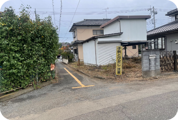 再びしばらく歩くと、左手に黄色い看板がある細い道がありますので左に曲がります。