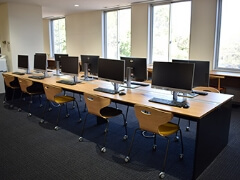 ② 検索専用のコンピュータで、本学所蔵の図書及び製本雑誌が探せます。書名の一部や副書名、調べたいテーマや出版社などからも探し出すことができます。