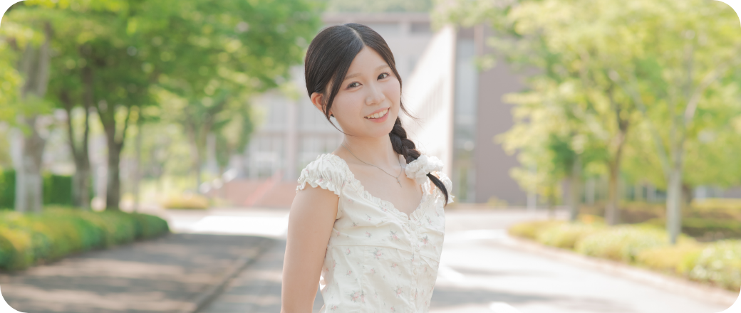 化粧品やメイクスキルといった「ビューティー」の世界に魅力を感じ、高校では学べなかったメイクや肌科学の授業を受けています。「女子短大」という温かく学びやすい環境の中で、集中して美容の勉強をすることができました。講義を通して美容の知識だけでなく、社会人として必要なマナーや心配りも身につけることができました。