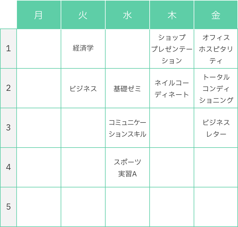 N・Mさんの1年時の時間割
