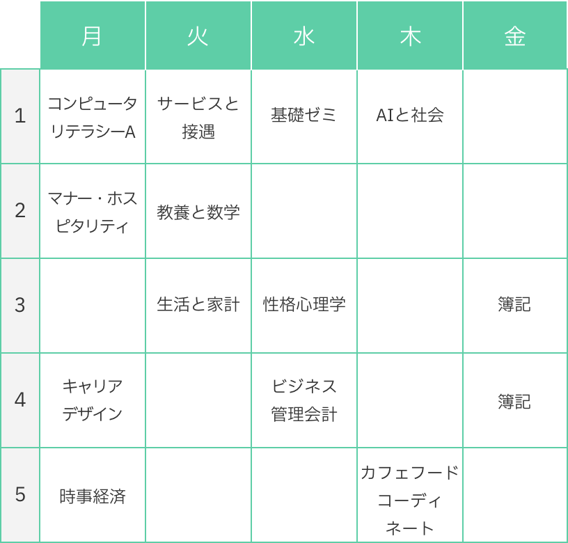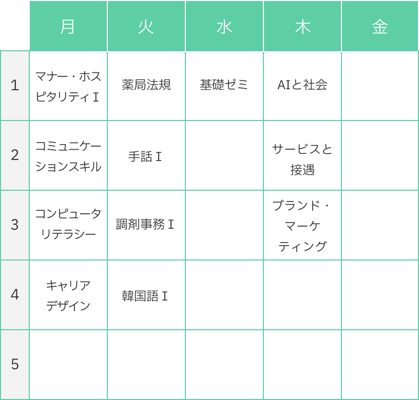 S・Hさんの1年時の時間割
