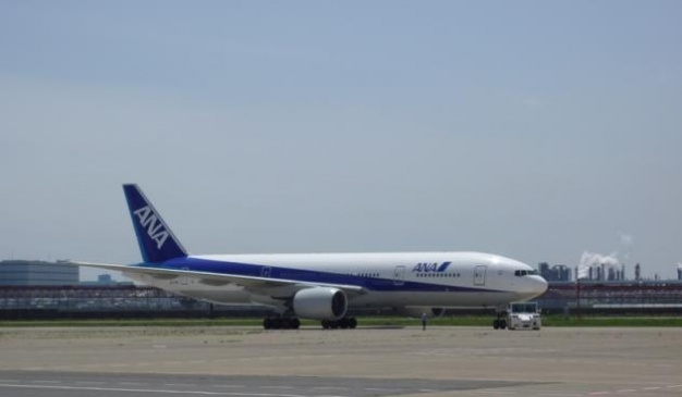 今年はANAが世界で初めて導入したボーイング787の特別塗装機(802A)がエンジン点検のためにドッグインしていたため、間近で機体を見ることが出来ました。今回の点検は、メーカーであるボーイング社にとっても世界で初めての点検になることから、ANAの整備士とボーイング社の整備士が合同で行うという貴重なものでした。