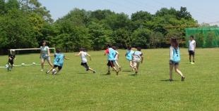 天気は快晴で風もなく、とても爽やかな気候でした。先生の指導の下、参加された小学生たちはみんな伸び伸びと楽しそうに走りまわっていました。途中からSAIJOのフットサルサークルのメンバーも参加し、一緒に汗を流しました。