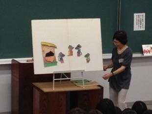 7月24日(火)に、ボランティアグループ「日高市おはなしブレーメン」の皆さんによるお話し会が開催されました。国際コミュニケーション学科の鬼塚先生が担当している授業「世界の民話」の一環で、春学期の最後をしめくくりました。
