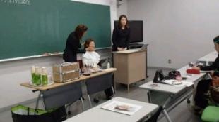 2012年11月9日(金)、ビューティー・キャリアコースの学生と「ブライダル・ファッション」の受講生を対象に、化粧品会社のスタッフをお招きして「パーティーメイクレッスン」が行われました。