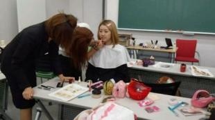 化粧品会社のスタッフがポイントごとにプロの技を伝授し、丁寧に指導してくださったおかげで、学生たちは素敵なレディーに変身しました。