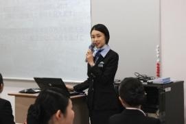 参加したエアライン・ホスピタリティコースの学生たちは、真剣なまなざしで聞き入っていました。