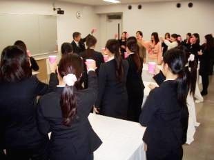 学長のあいさつに始まり、ケーキなどを食べながら教職員を交えての歓談後、参加学生の決意表明がありました。