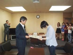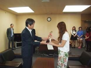 2013年10月9日(水)、学長室にてチアダンスサークル『NEXT』とバレーボールサークルが、桾沢学長より表彰状を授与されました。