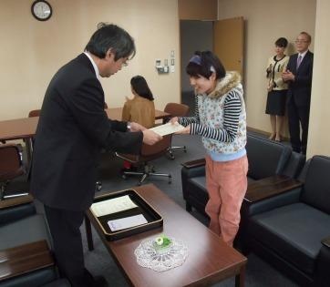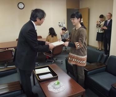対象学生には、桾沢学長から表彰状および記念品が授与されました。