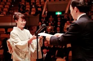当日は大変寒い一日でしたが、森川教授、代表学生3人、学長が晴れの表彰式に臨みました。189校のエントリーがあり30校が選ばれるという難関であり、しかも短大はわずかの2校ということで大変な快挙です。