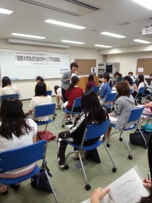 この講座は、キャリアにまつわる様々なテーマに沿って、他短大の学生達と共に考えることが目的です。