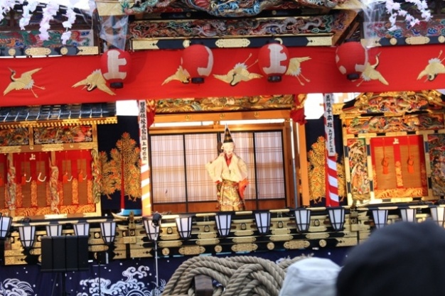 豪華な歌舞伎舞台と勇壮な歌舞伎の演技そして雅な笠鉾と屋台の巡行を堪能しました。今年は小鹿野歌舞伎を題材に研究します。