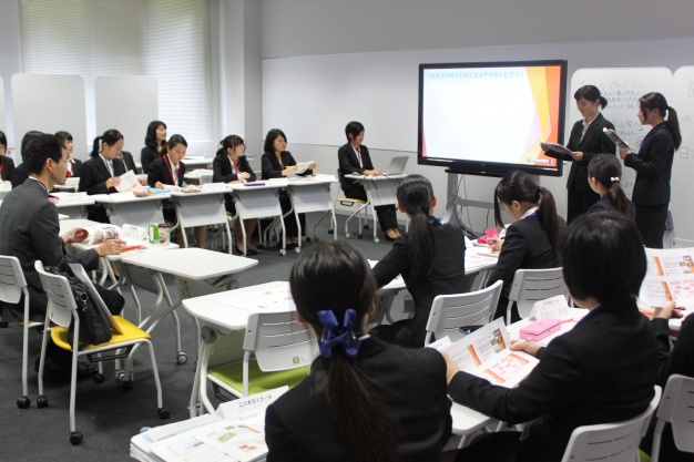 数チームに分かれて、企画をプレゼンテーションしました。「今週末は山梨へ~五感で癒しを感じよう~」「隠れた人気スポットを巡る 食欲の秋 グルメツアー」「大人は根性試しの男気旅!!!ついでにお子さんも一緒に大人気旅!!!」などの旅行企画があり、学生は真剣にプレゼンテーションに取り組んでいました。
