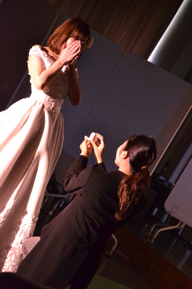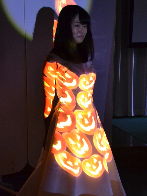 絵日記に合わせて進行する夏、ドレスにプロジェクションマッピングを駆使した秋、ストーリー仕立てで出会いからプロポーズを表現した冬、野に咲く花をドレスで表現した春。会場はその迫力に盛り上がっておりました。