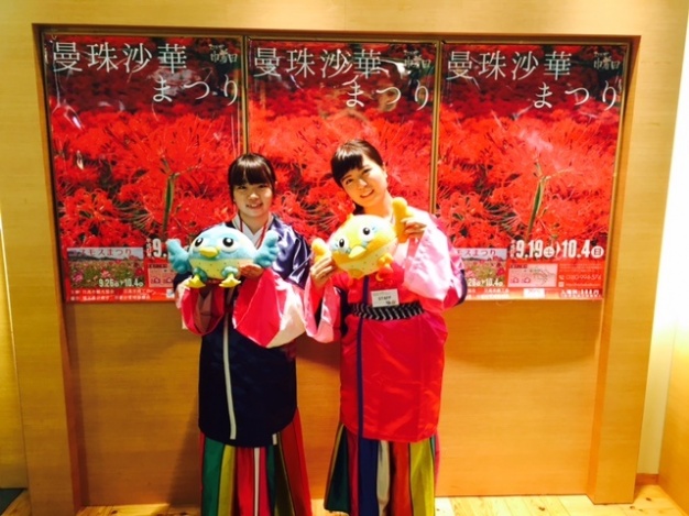 高麗の衣装をきてパンフレットを配りながら、埼女の三ツ木ゼミの活動と共に日高市の曼珠沙華の話やくりっかーを着てPRを行いました。