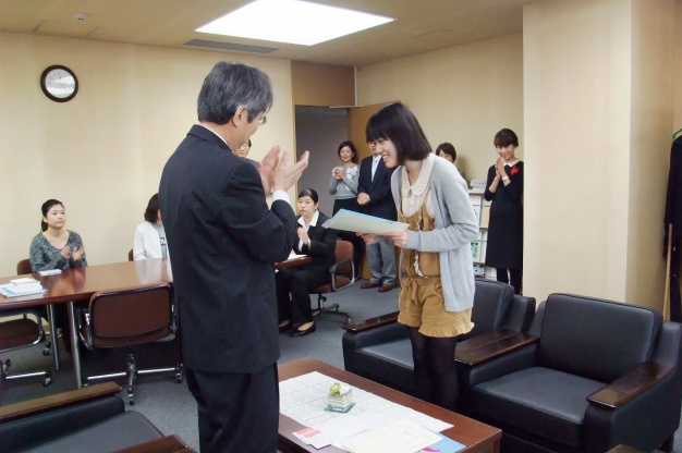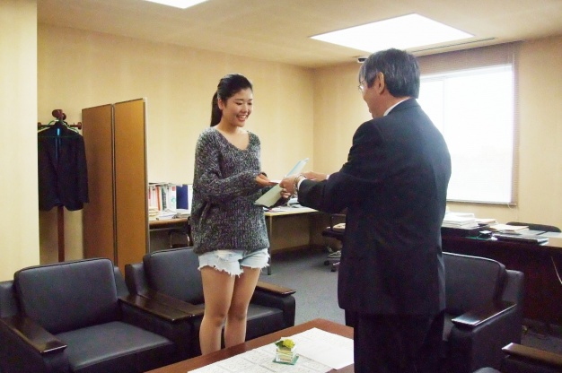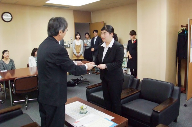 2015年11月11日(水)、2015年度春学期の学習奨励賞表彰式が学長室にて行われました。