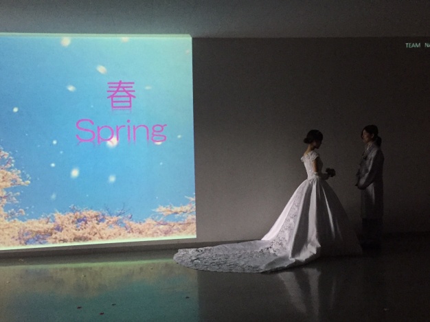 2015年12月13日(日)のオープンキャンパスにて「ウエディングドレスショー」を行い、「ウエディングファッション実務」科目履修の60名が6つのテーマで発表しました。