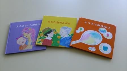 今回は、これまで製作した他の絵本「えくぼちゃんの魔法」2013「みかんいろの笑顔」2014、「きらきらのひみつ」の3冊を大学の図書館の蔵書にしていただけることになりました。また、「えくぼちゃんの魔法」はプリンストン市立図書館へも寄贈されました。