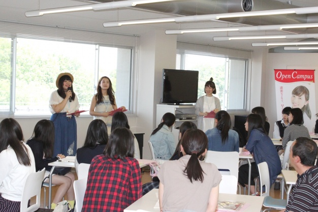 「ミニ体験授業」では、SAIJIO生スピーチやファッション、エアライン、韓国語などのミニ体験授業のほか、キャンパス見学ツアーやSAIJO生との懇談も実施しました!ミニ体験授業では、業界出身の先生が専門的な知識・技術を紹介しました。