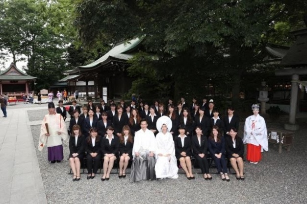 6月12日(日)、学外授業でブライダル・コーディネートコースの1年生40名が、川越氷川神社・氷川会館にて施設見学、模擬挙式を体験いたしました。