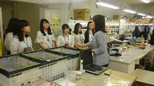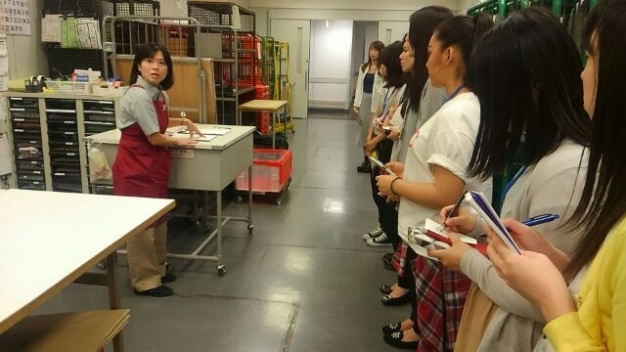 お客様ニーズについての講義のあと、4つのグループに分かれて解説つきで店内のディスプレイを見学した後、バックヤードのPOP室、縫製室や物流といった部門までご案内いただきました。