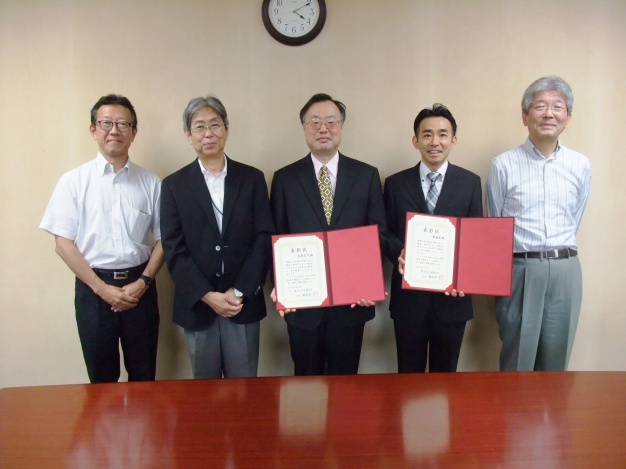 今回は、齊藤彰准教授、大野広之兼任講師に対し表彰式が執り行われ、桾沢学長より表彰状および副賞が授与されました。