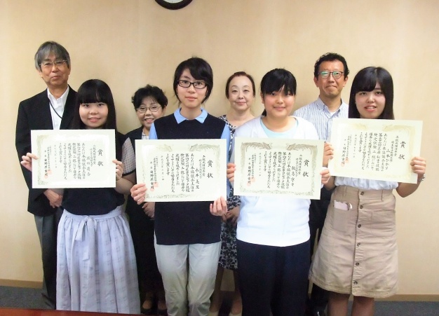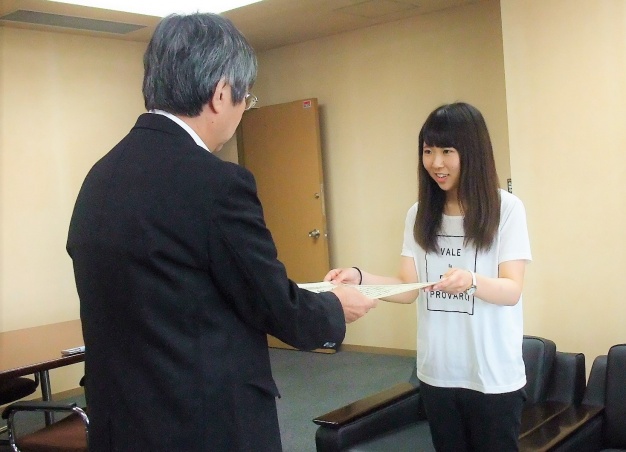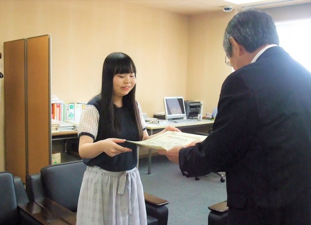 2016年6月に行われた医療秘書教育全国協議会主催の「第56回医療秘書技能検定」、「第41回医事コンピュータ技能検定」の成績優秀賞を本学の学生が受賞し、2016年8月3日(水)に学長室にて桾沢学長より表彰状が授与されました。
