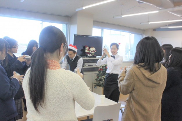 高2生の参加が多かった12月オープンキャンパスは、SAIJOの1年生が企画した特別プログラム「Let’s!クリスマス女子会」を開催★サンタ帽子を被ったSAIJO生が、企業のクリスマス戦略やカクテルパフォーマンスを披露しました!高校生もシェーカーを振って、クリスマスカクテルジュース作りを体験!SAIJOの学びの特長を取り入れた楽しいプログラムとなりました。また、チアダンスサークル「NEXT」の笑顔が詰まったパフォーマンスも可愛らしかったです♡
