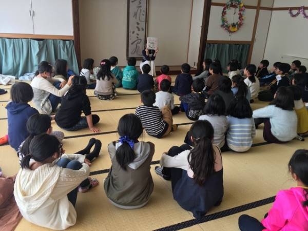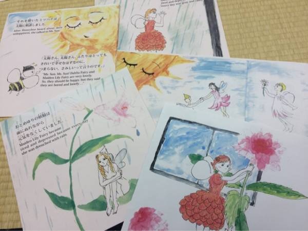 現地では、小学校や保育園、幼稚園を訪問し、子供達に花の妖精を主人公に、花を育てる人の思いや苦労を読んで聞かせました。