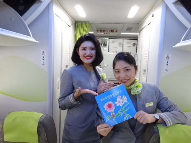 ソラシドエア(旧スカイネットアジア航空)とは5年前、会社が社名やコーポレートカラーの変更をブランディングした年に、「空から笑顔の種を蒔く」というコンセプトに基づき、絵本の共同製作をさせていただいてからのご縁です。