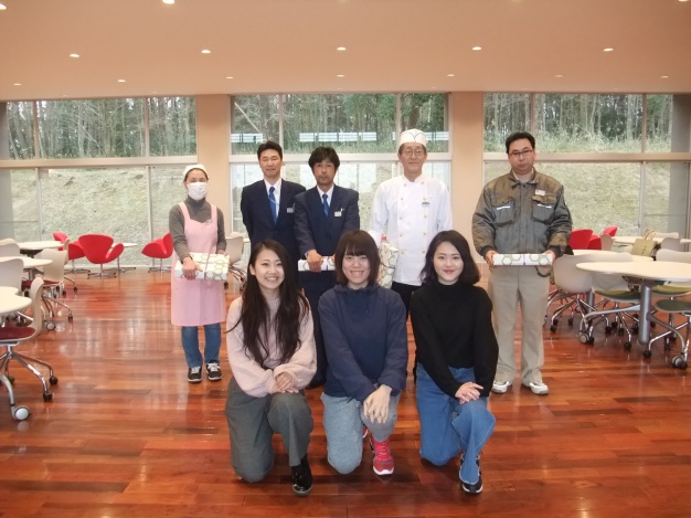 3月7日(火)、卒業記念パーティー実行委員のメンバーが在学中お世話になった警備の方、清掃の方、食堂運営の方、バスの運転手さんに感謝の気持ちを込めてプレゼントを渡しました。