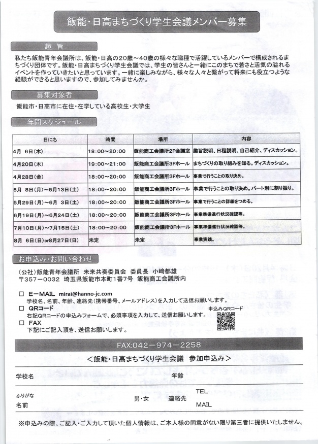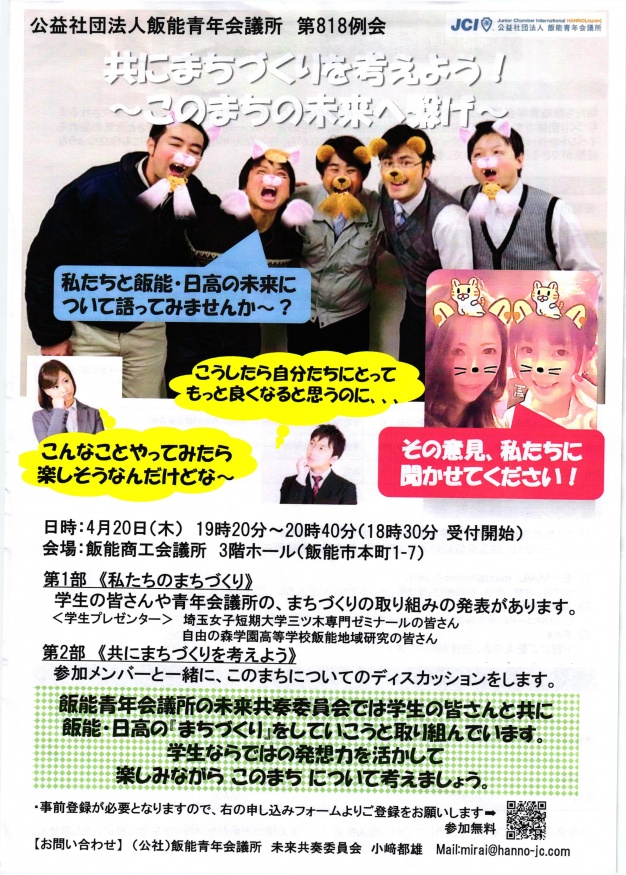 ●お問い合わせ (公社)飯能青年会議所 未来共奏委員会