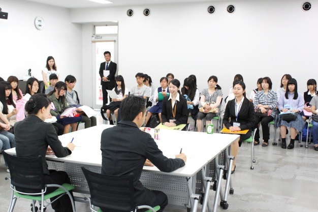 学生の模擬試験を行います。本番さながらの面談・面接を見学し、その場