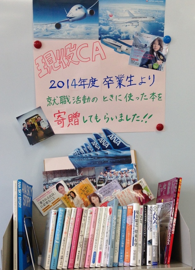 【図書館】現役CAの卒業生より本の寄贈がありました! 2017.05.16 2014年度卒業で現在キャビンアテンダントとして活躍している卒業生より、 就職活動の際に使用していた本を寄贈してもらいました! 貸出も可能です。ぜひ、就職活動の参考にしてください!! 一覧へ戻る