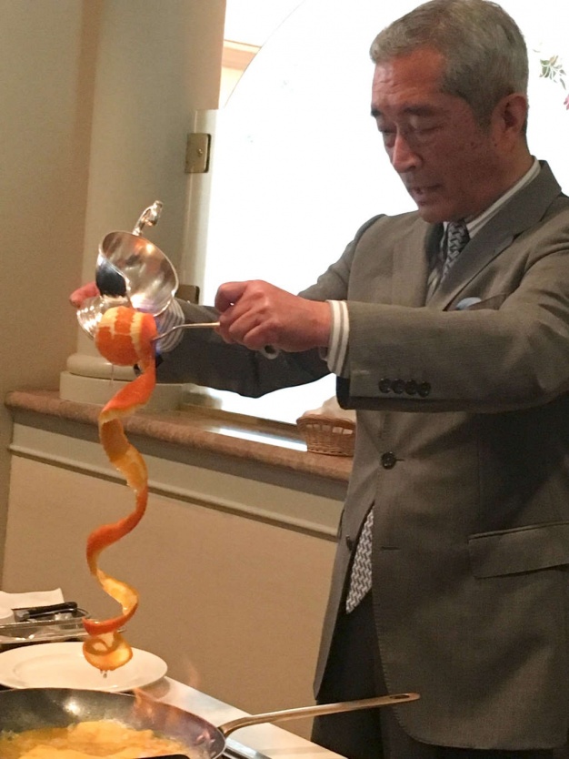 加藤先生のクレープシュゼットは、リキュールの香りがしみ込んで、今までに経験したことのない大人の味でした。