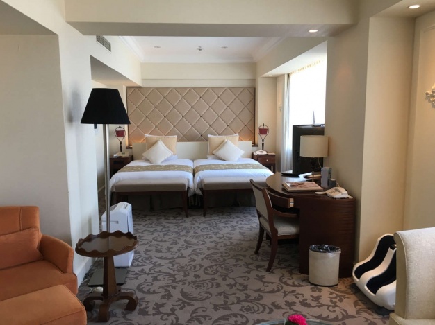 お食事の後は、客室の見学をさせていただきました。最後に最上階のロイヤルスィートを拝見させていただき、その広さと豪華さに一同感嘆のため息を漏らしておりました。