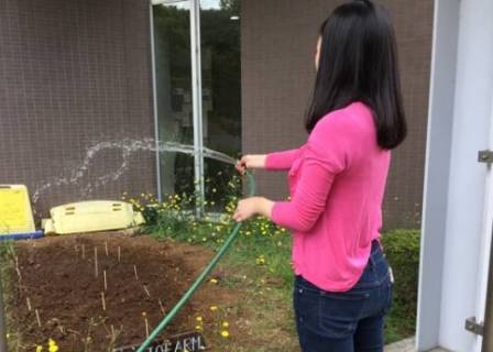 今年の5月は急に肌寒くなった日もあり、予定を過ぎてもなかなか芽吹かず、全員でとても心配をしていました。大学の保守管理をしてくださっている職員の方々も心配して、学生が見ていないところで、お水や肥料をあげてくれました。