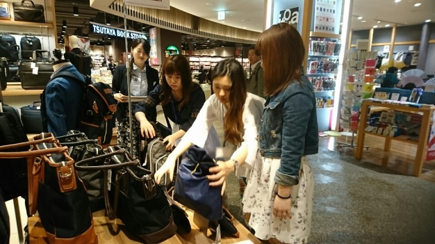 ・レディスシューズ、水着、メンズバックの3か所にて実習