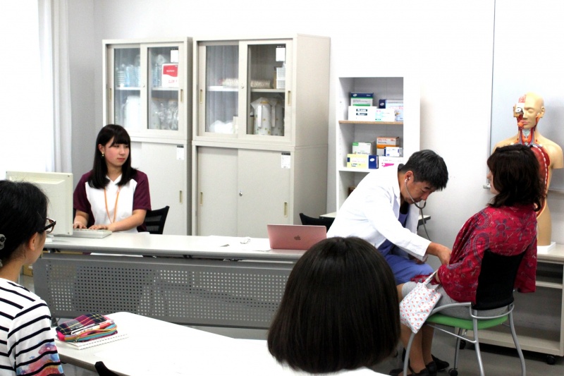 「SAIJO体験授業」では、ホスピタリティ・医療事務・観光・ブライダルの授業の中から1つ選んでもらって体験をしてもらいました。ホスピタリティの授業ではSAIJO生をモデルに好印象を与えるメイク術を学びました。メイクは身だしなみのひとつなので社会人になったら欠かせないホスピタリティのひとつなんですよ。医療事務の授業では、現場経験のある3人の先生とSAIJO生が受付から診察までの病院の流れを解説を交えながら実演してくれました。医療事務スタッフの仕事の役割を知ることができたのではないでしょうか。