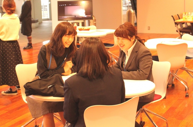 全体説明会と各プログラムを体験したあとは「SAIJO生との懇談」を行っています!1日を通して、SAIJOを知ってもらい気になったところを実際に学生生活を送っているSAIJO生からさらに詳しく聞ける場となっています。女子トークに華を咲かせていて、とても楽しそうでした!