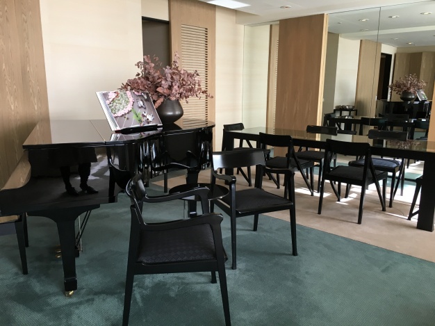 スイートの中でも、プレミアムスイートには各お部屋にプライベートライブラリーがしつらえられ、洋書、写真集、アートブックなど数百冊の蔵書もインテリアの一部となっていました。さらにグランドピアノも置かれていて、ラグジュアリー感が漂っていました。