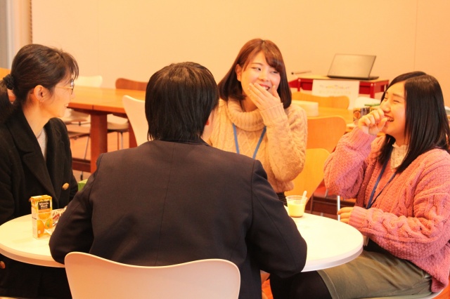 「SAIJO生との懇談」では、先生も懇談に入っている光景が見られます。SAIJOは学生と先生の距離が近いのも魅力の1つです!SAIJO生にとって先生方は、学生生活や就職活動などなんでも相談にのってくれる頼れる存在です。そんなSAIJOの先生に会いに来てみてくださいね!