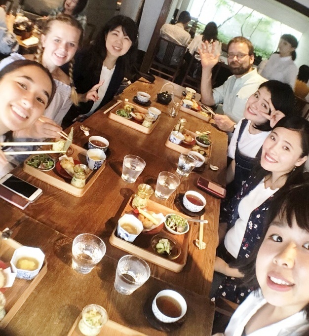 同行したSAIJOサポートスタッフの学生と留学生のふたりは仲が良く、話がはずみます。お昼は長谷寺の近くの「空花」へ。前菜にクラゲやしんじょなどが出て、留学生も初めての食感を楽しんでいたようでした。