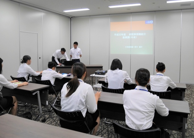 上尾中央総合病院様は、上尾中央医科グループの本院でたいへん大きな病院です。事務職員の方が医事課の仕事内容を分かりやすく説明してくださり、学生も積極的に質問をしていました。