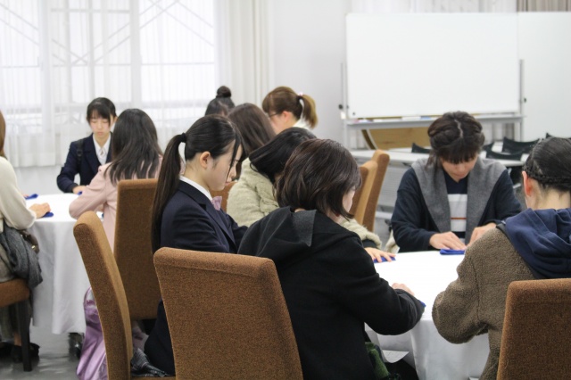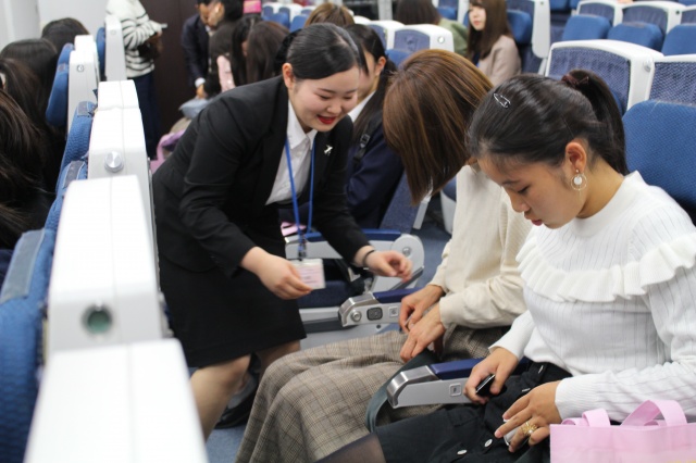『劇場型キャンパス見学ツアー』と題し、ファッション、医療事務、ホテル、エアラインの各コースの授業で使用している教室をめぐり、それぞれの教室で在学生によるプチ授業も経験していただきました。それぞれのコースでどのようなことをしているのか、興味をもっていただけたのではないでしょうか。