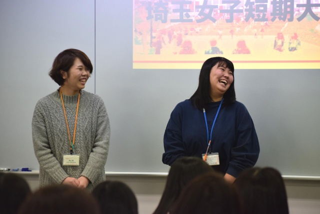 後半のスピーチでは授業やインターンシップ体験、就職活動などをインタビュー形式で紹介しました。みなさんもSAIJO生のリアルな体験談を聞いてみてください!