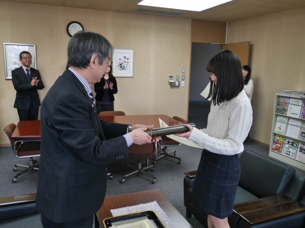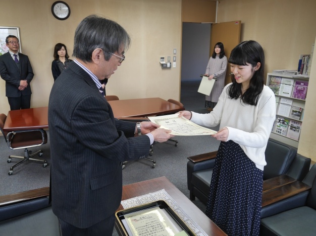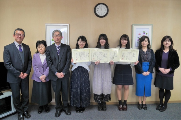2018年11月に行われた医療秘書教育全国協議会主催「第61回医療秘書技能検定試験」および「第46回医事コンピュータ技能検定試験」の結果において、成績優秀賞を受賞された学生に、2019年1月31日(木)学長室にて桾沢学長より表彰状が授与されました。