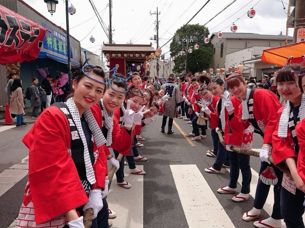 4月27日~28日の2日間、本学エアラインホスピタリティコース1,2年生の有志総勢約60人で埼玉県入間市の「おとうろうまつり」に参加し、元気と笑顔で山車の曳き廻しを行いました。